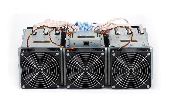 Home » Crypto mining hardware » Antminer S5+ » Front view with fans attached